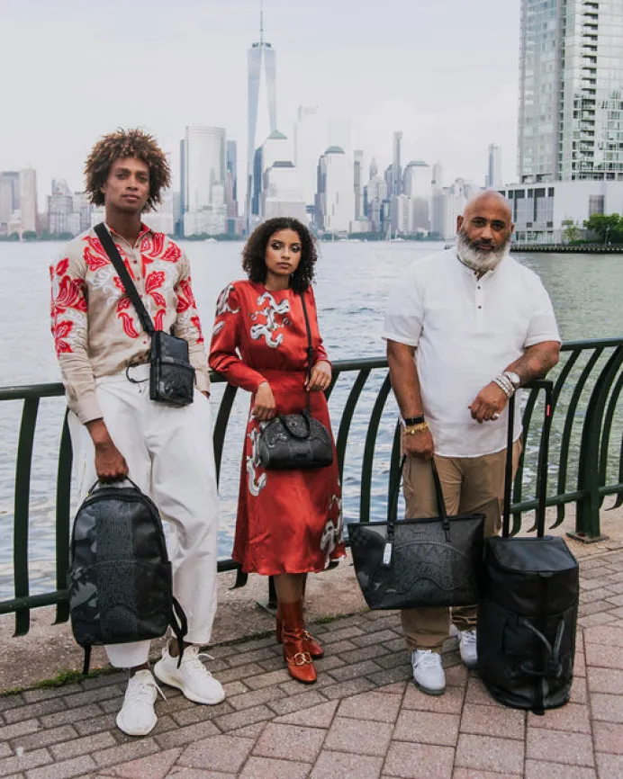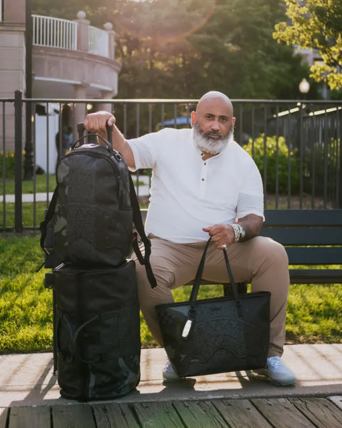 PRODUCT DETAILS 100%FAUX LEATHER Added rolling wheels & handle. Dimensions: 20" x 10" x 10.75" • Metal zipper pocket•Back Zippers •Zippered sneaker pocket • gold zippers • Adjustable Straps for custom sizing •Metal Zippers with Metal Hardware • bag of Sprayground money Fabric DurableFaux Leather water-re