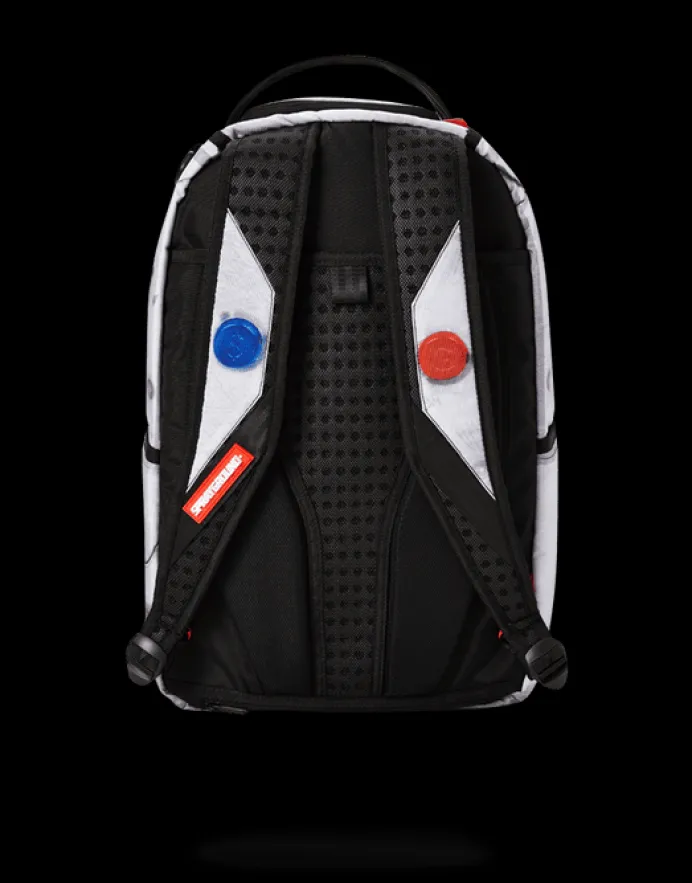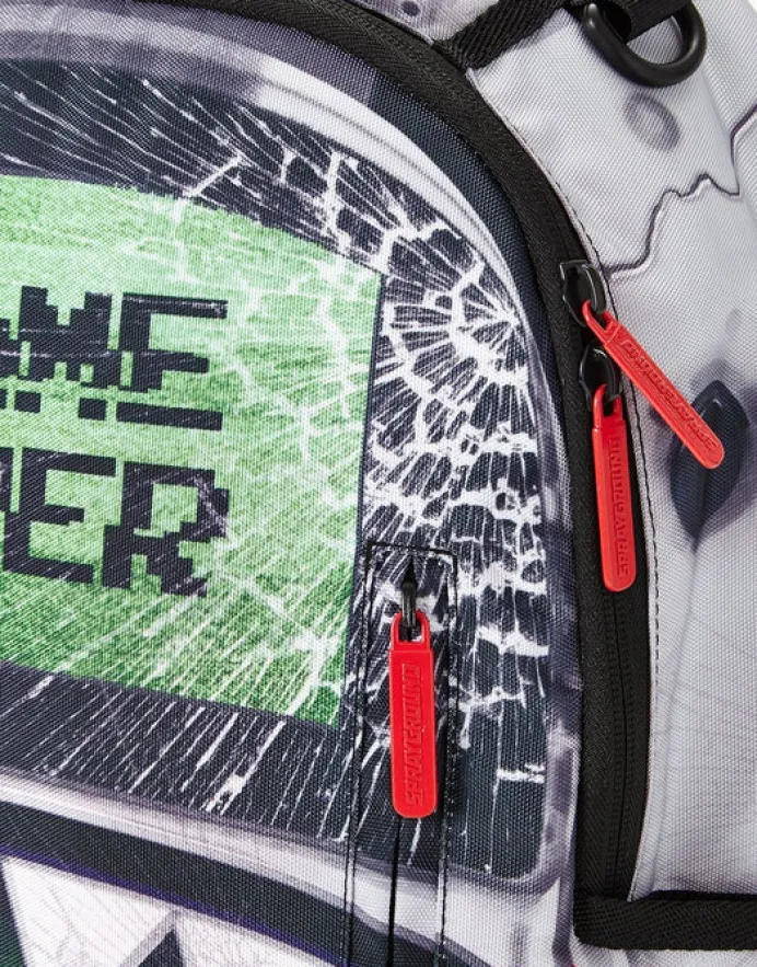PRODUCT DETAILS Exterior Dimensions: 18" x 6" x 11.5" ∙ Front zipper pocket ∙ Side pockets ∙ Zippered Stash pocket ∙ Ergonomic mesh back padding ∙ Adjustable Straps for custom sizing ∙ Nylon Zippers with Metal Hardware ∙ Metal "Sprayground Authentic" badge ∙ Slide through back sleeve connects to Carry on luggag