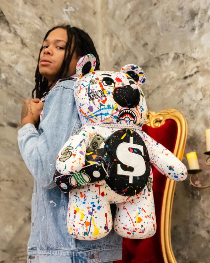 💵🧸 THE MONEYBEAR BACKPACKS COME IN A UNIQUE MYSTERY BAG PACKAGING Get the chance to unwrap 1 of 5 SUPER limited Money Bears. Try and collect them all if you dare. You will receiveone of: ∙HIGHBEAR-NATE BEAR ∙ANTI-GRAVITY BEAR ∙YOUNG SCRIBBLE BEAR ∙T-PAINT BEAR … and The SurpriseRare DIAMOND CUT BEAR