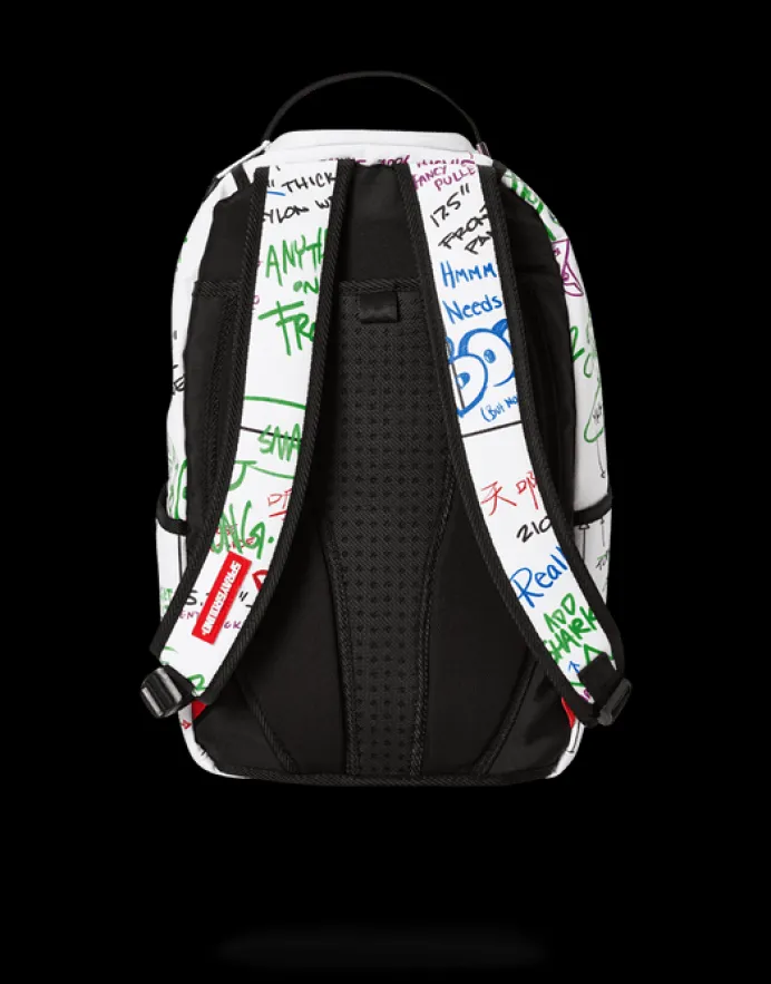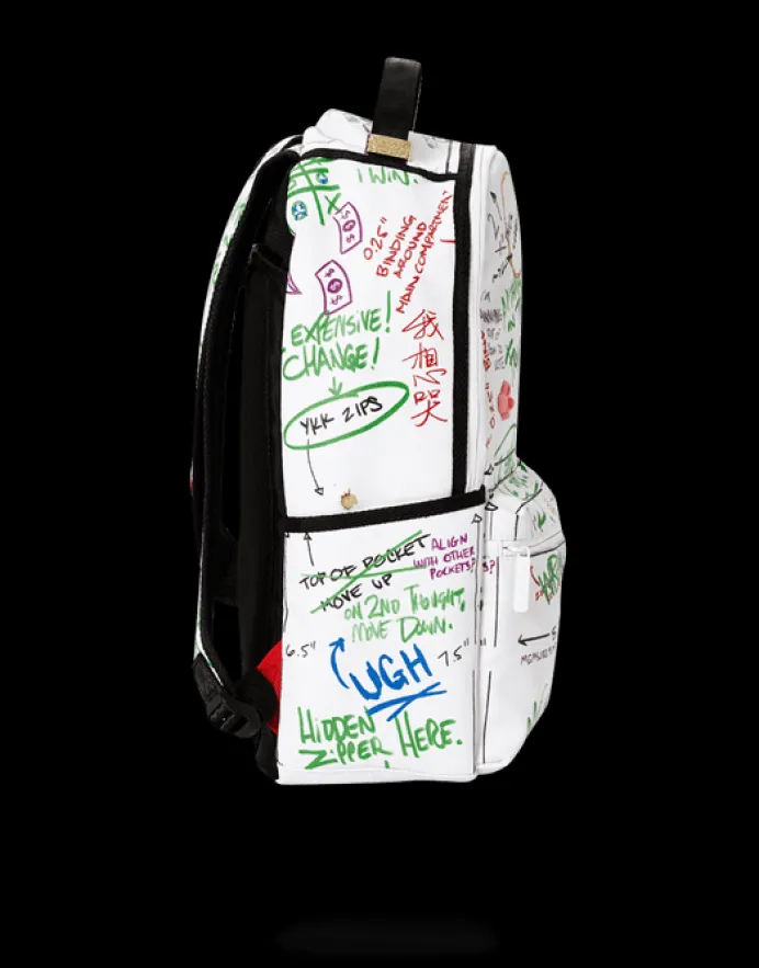 PRODUCT DETAILS Exterior Dimensions: 18" x 6" x 11.5" ∙ 2 Front zippered pockets ∙ Side pockets ∙ Zippered Stash pocket ∙ Ergonomic mesh back padding ∙ Adjustable Straps for custom sizing ∙ Nylon Zippers with Metal Hardware ∙ Metal "Sprayground Authentic" badge ∙ Slide through back sleeve connects to Carry on l